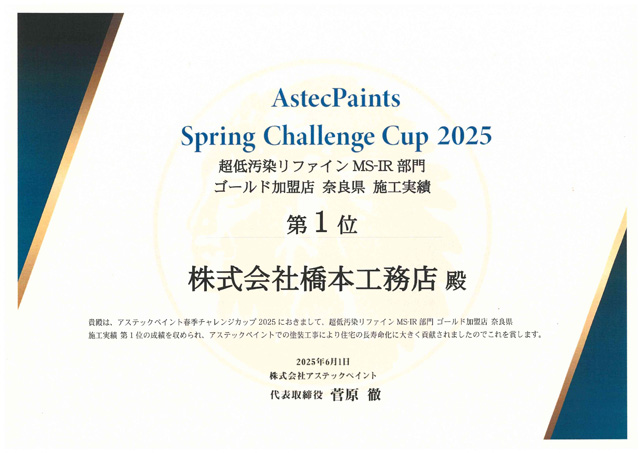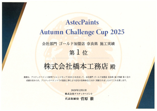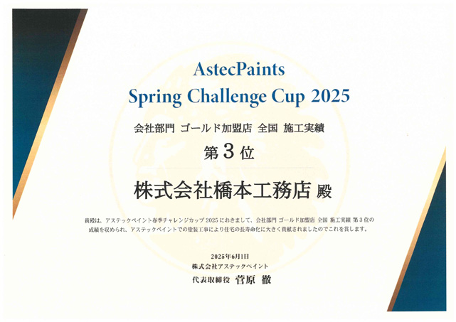 その結果、橋本工務店は塗料メーカーから毎年多くの表彰をいただいております!