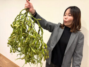立派な枝豆を前に、思わずテンションが上がる山田さん!!